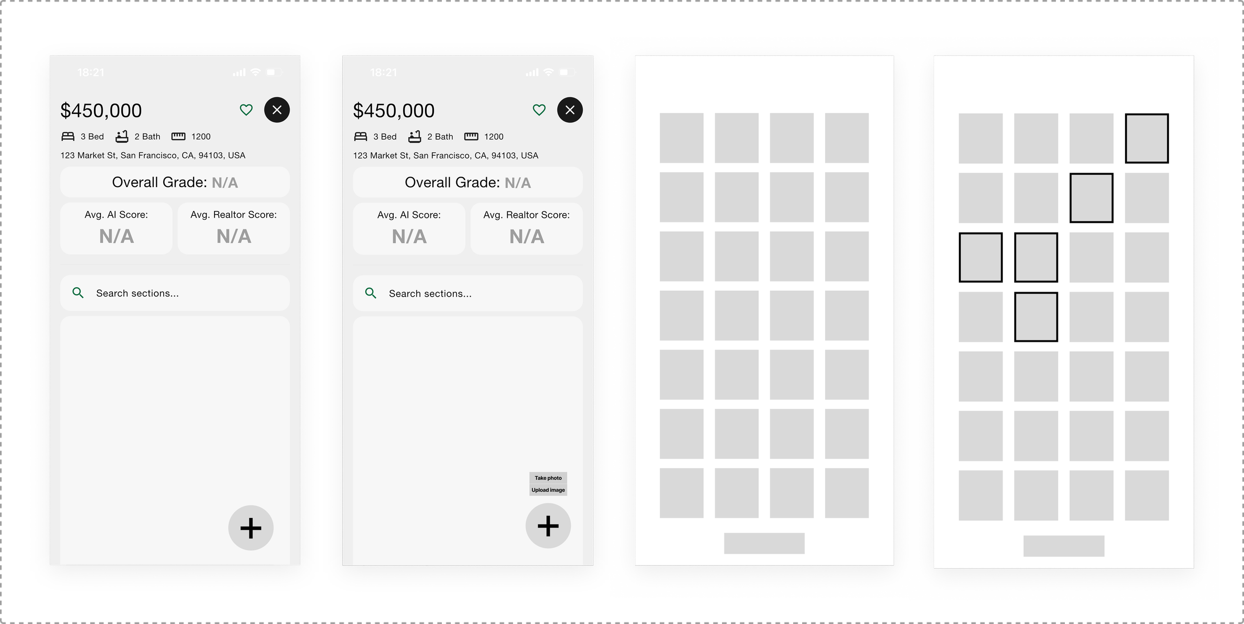 Conducting usability testing to see how realtors interact with the grading feature using the camera.