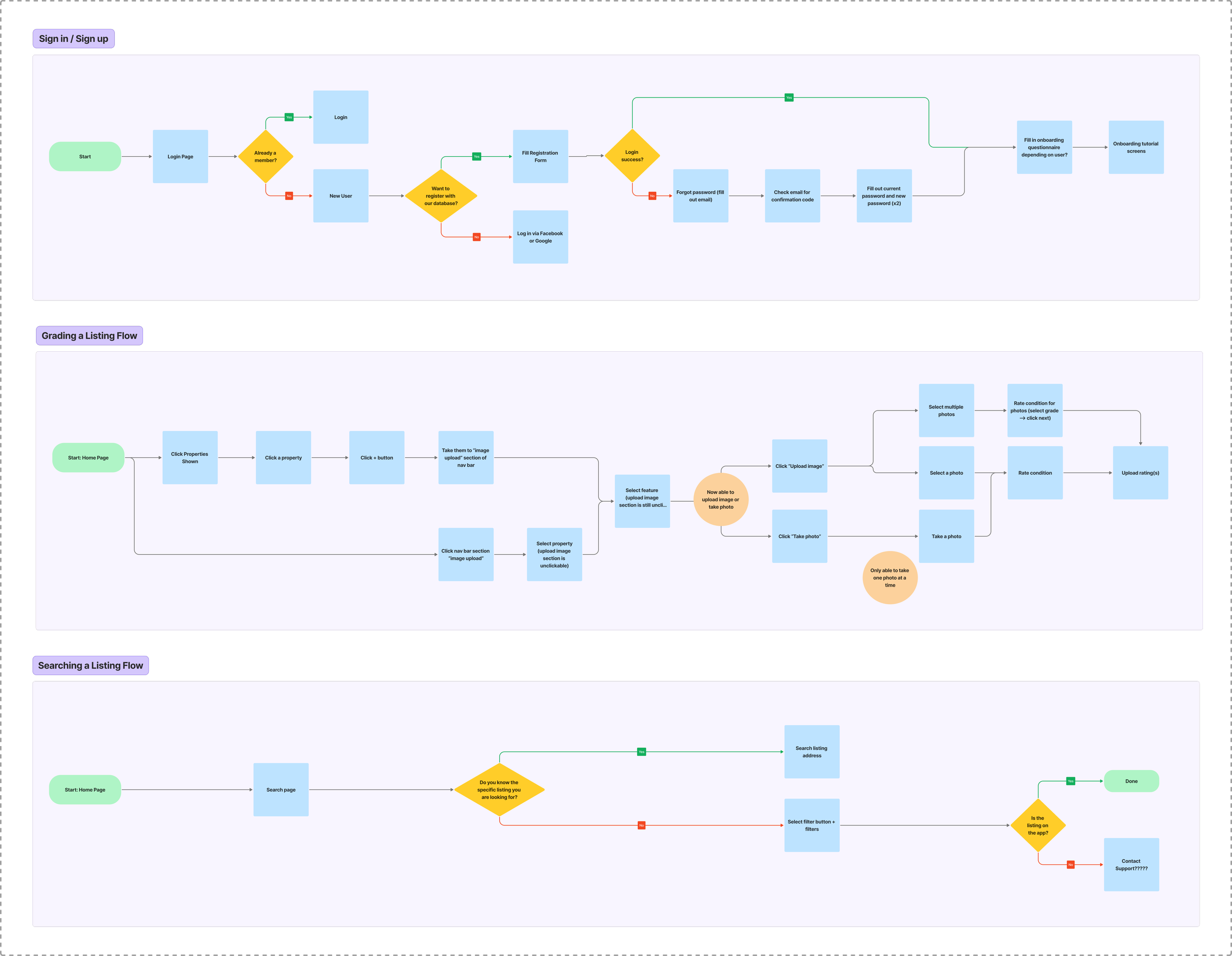 After several discussions with both the client and developers, we determined three key flows to work on based on potential user and current business needs.