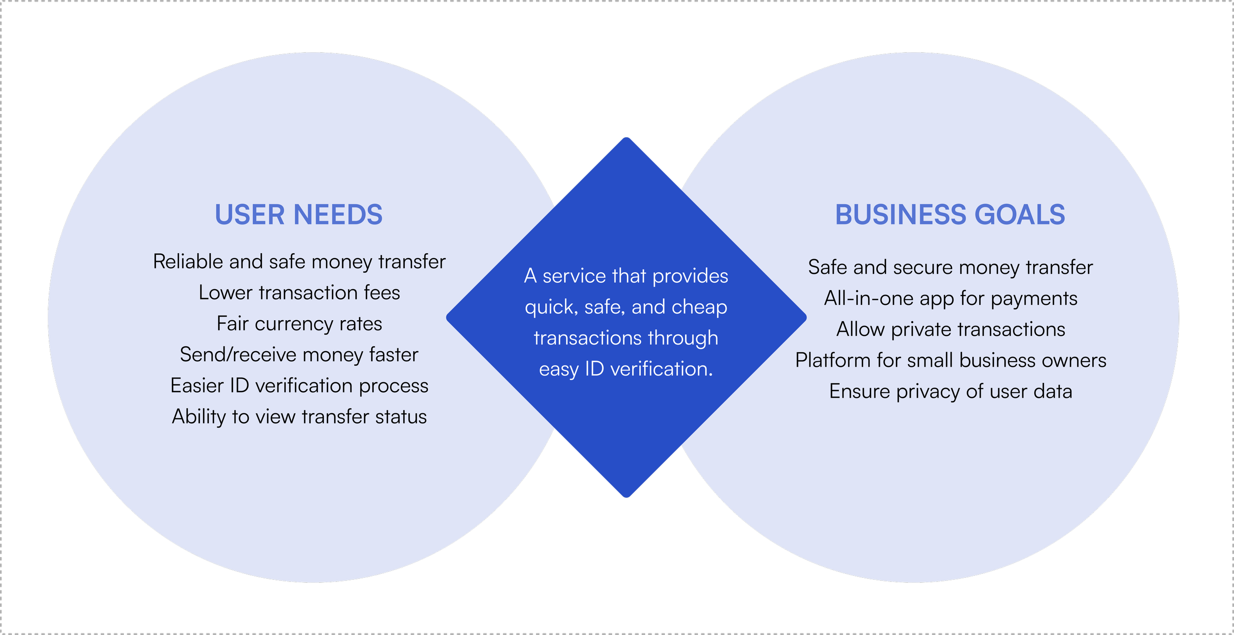 An important aspect we had to consider was not only the needs of the users, but the needs of the business as well. After discovering the needs and pain points of the users, we switched our viewpoints to the business perspective in order to see the commonality of the two. From there, we were able to obtain a better understanding of what needed to be integrated into the app.